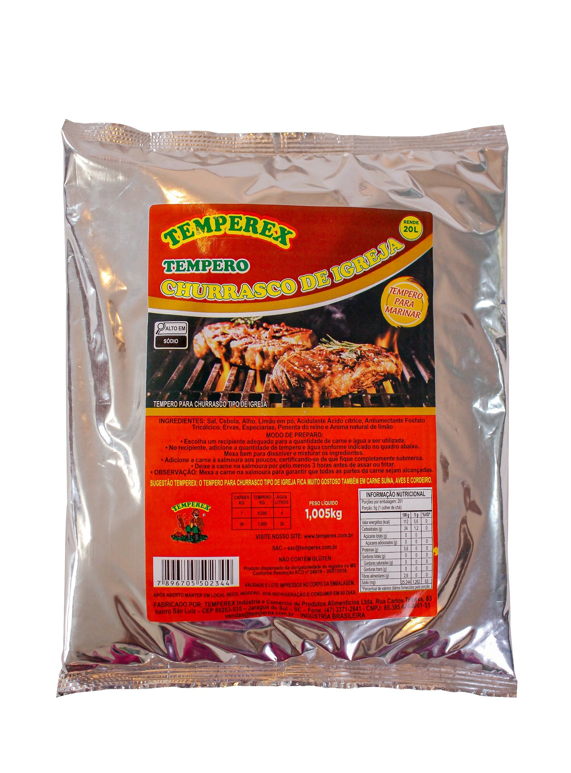 Transforme seu churrasco com o Tempero para Marinar Sabor Churrasco de Igreja da Temperex. Criado para realçar o sabor da carne, ele combina sal, cebola, alho, limão em pó e uma seleção especial de ervas e especiarias, garantindo uma marinada perfeita e equilibrada.